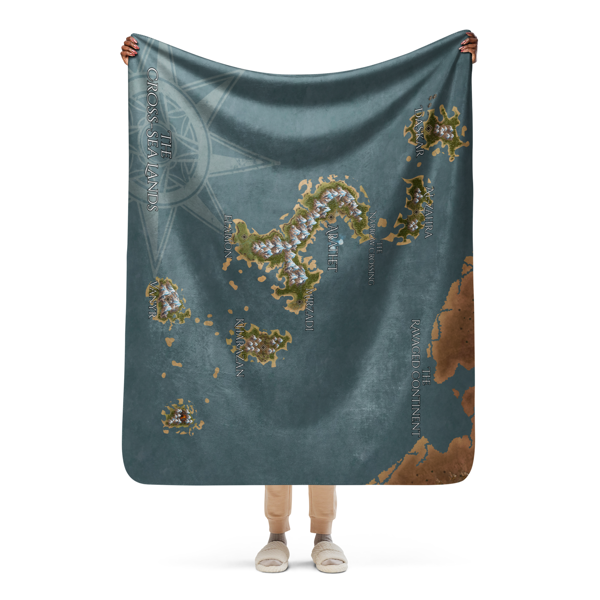 Indulge in the magic of the Cross-Sea Lands and keep your favorite fantasy world close with our Sherpa Fleece Blanket. Order now and transform your reading experience with the ultimate blend of comfort and adventure!